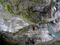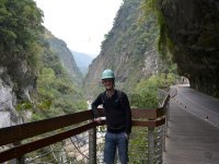 Direction ensuite le cœur du parc, la swallow grotto, mais avant on s’équipe de casques, ce sont des cavernes avec d’énormes falaises impressionnantes. Puis c’est l’heure d’une petite marche sur le Shakadang trail dans les gorges très belles, on test même une saucisse locale.
